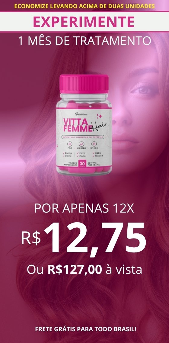 O prazo médio de entrega do Vitta Femme Hair são de 7 a 15 dias úteis e para algumas regiões pode chegar até 20 dias úteis. O prazo passa a valer após a confirmação do seu pagamento pela administradora do seu cartão de crédito ou após confirmação do pagamento do boleto.